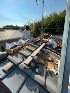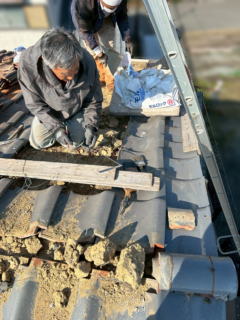 瓦葺きに使われる土や漆喰が破損しており、瓦全体にズレが生じていたため、雨漏りにつながる状態でした。