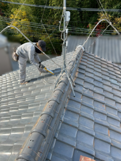 最終工程では、瓦のズレを防止するための固定作業を行いました。