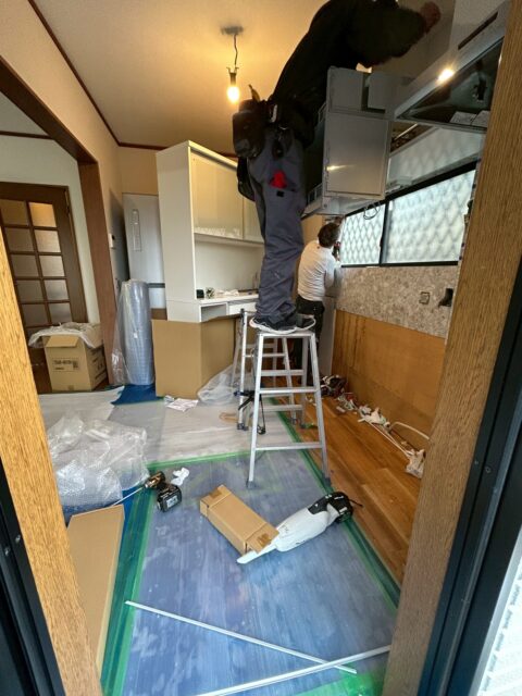 既存のキッチンを撤去後、間取り変更に伴う工事を進めていきます。
